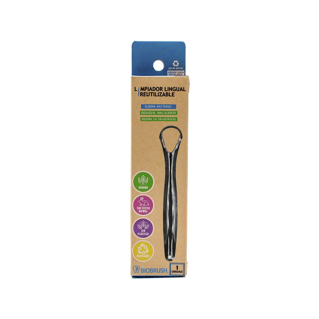 Sumérgete en una experiencia de higiene bucal excepcional con el Limpiador Lingual Reutilizable de Biobrand. Una creación reutilizable diseñada por odontólogos chilenos y fabricada completamente en acero inoxidable.