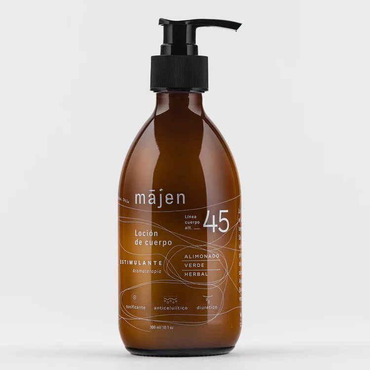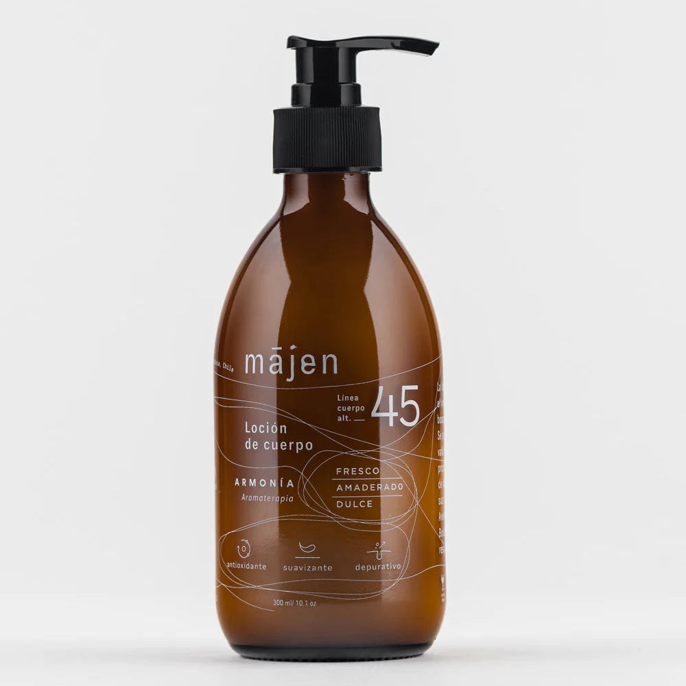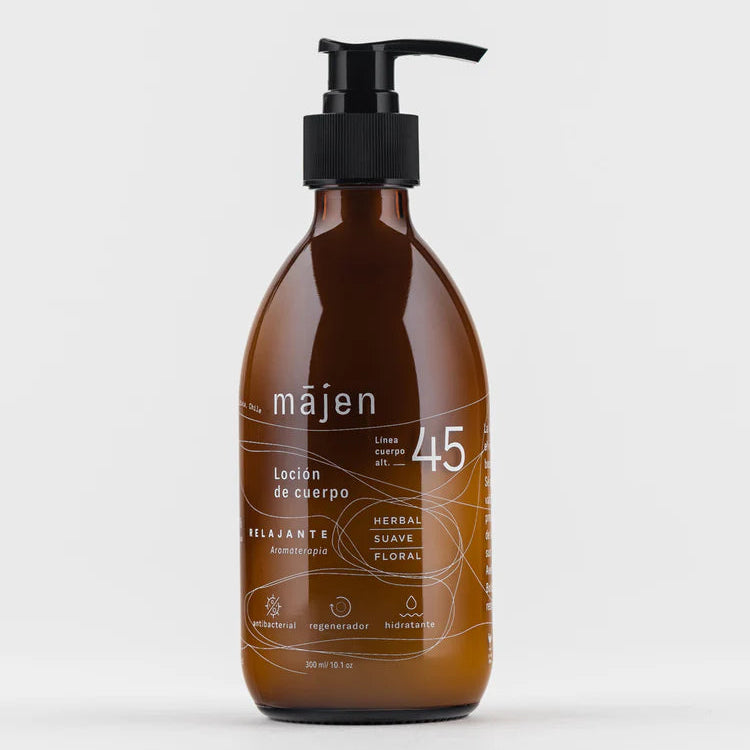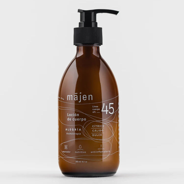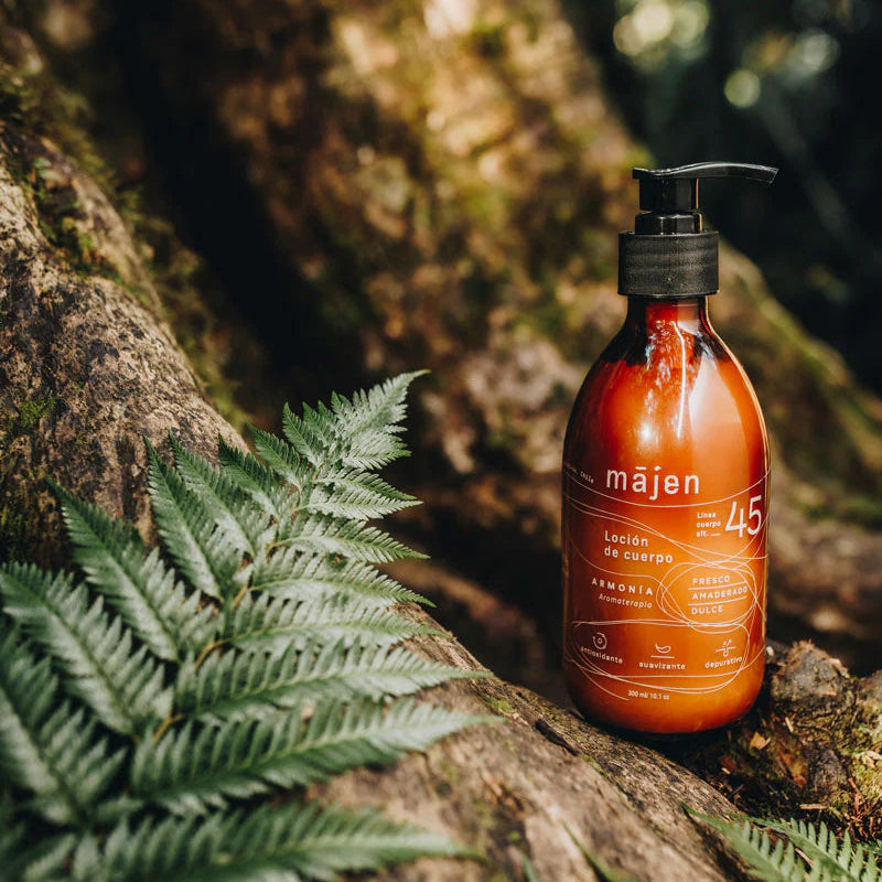 La loción corporal de Majen promueve el vínculo entre el bosque y tu cuerpo. Su acabado ligero da una sensación suave a la piel y es de fácil absorción. Está enriquecido con aceite de damasco y aloe vera, que prolonga y promueve salud de piel.