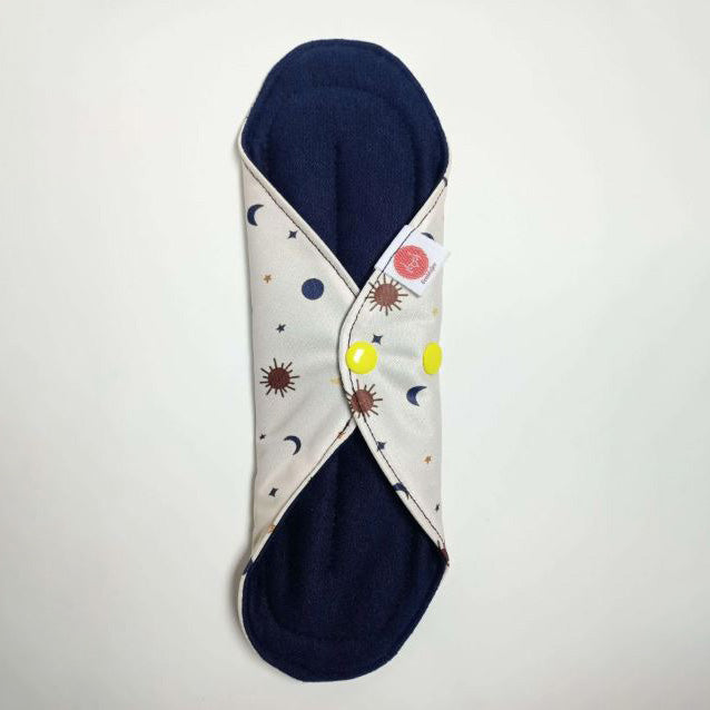 Toalla diurna femenina para flujo normal. Confeccionado con 4 capas internas de algodón absorbente. La capa exterior es de tela PUL, impermeable y respirable, mientras que la superficie en contacto con la piel es de suave franela algodón.